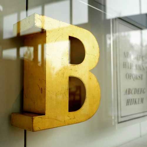 Dickes Goldenes B FOTO ::: FOTOSTORY ::: Deutsches Buch- und Schriftmuseum der Deutschen Nationalbibliothek. 1884 als Deutsches Buchgewerbemuseum in Leipzig gegründet. Hier das dicke goldene Bodoni-B aus der Dauerausstellung: Zeichen – Bücher –…